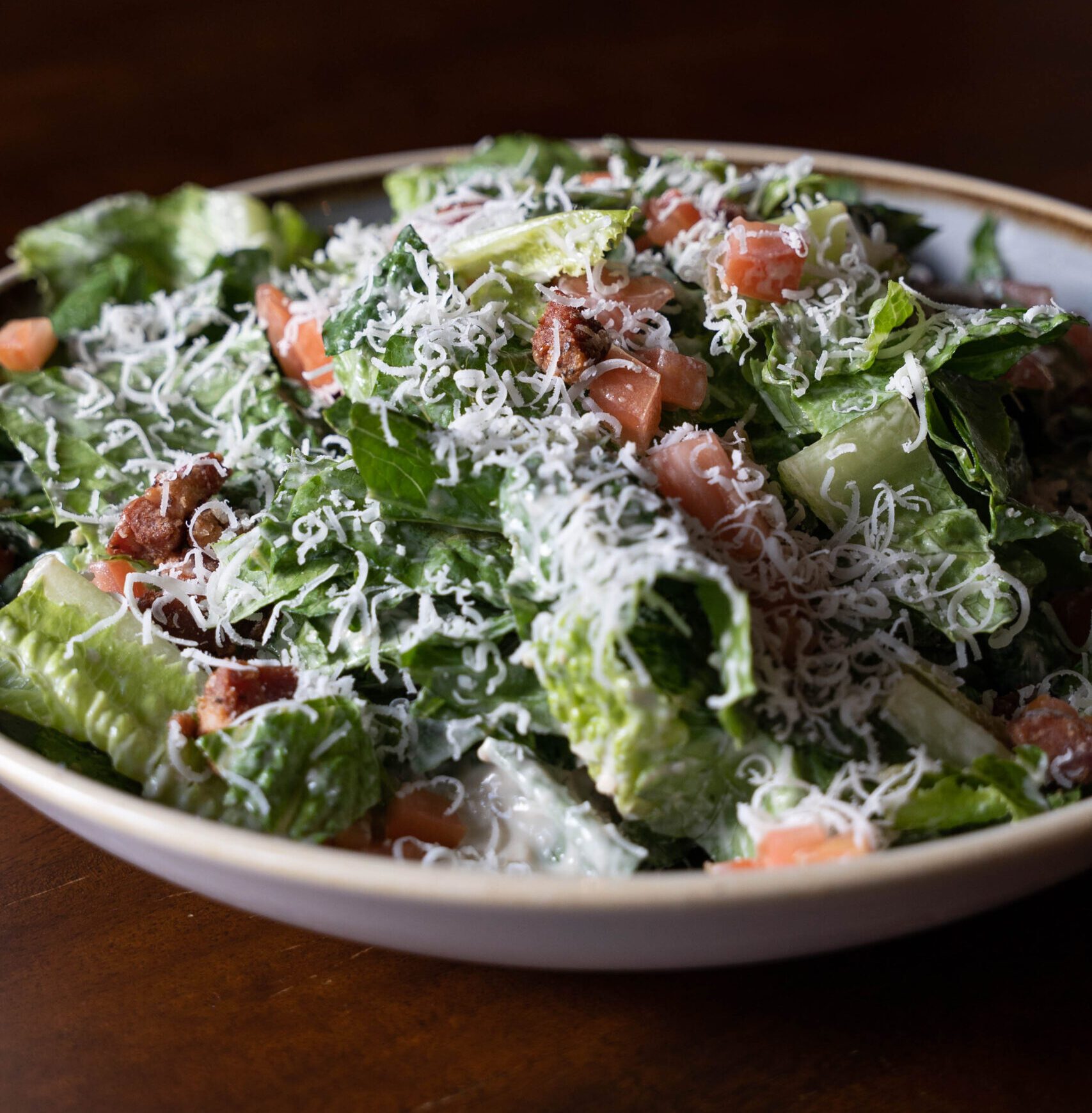 romaine, toasted breadcrumbs, shaved parmesan, black garlic caesar dressing