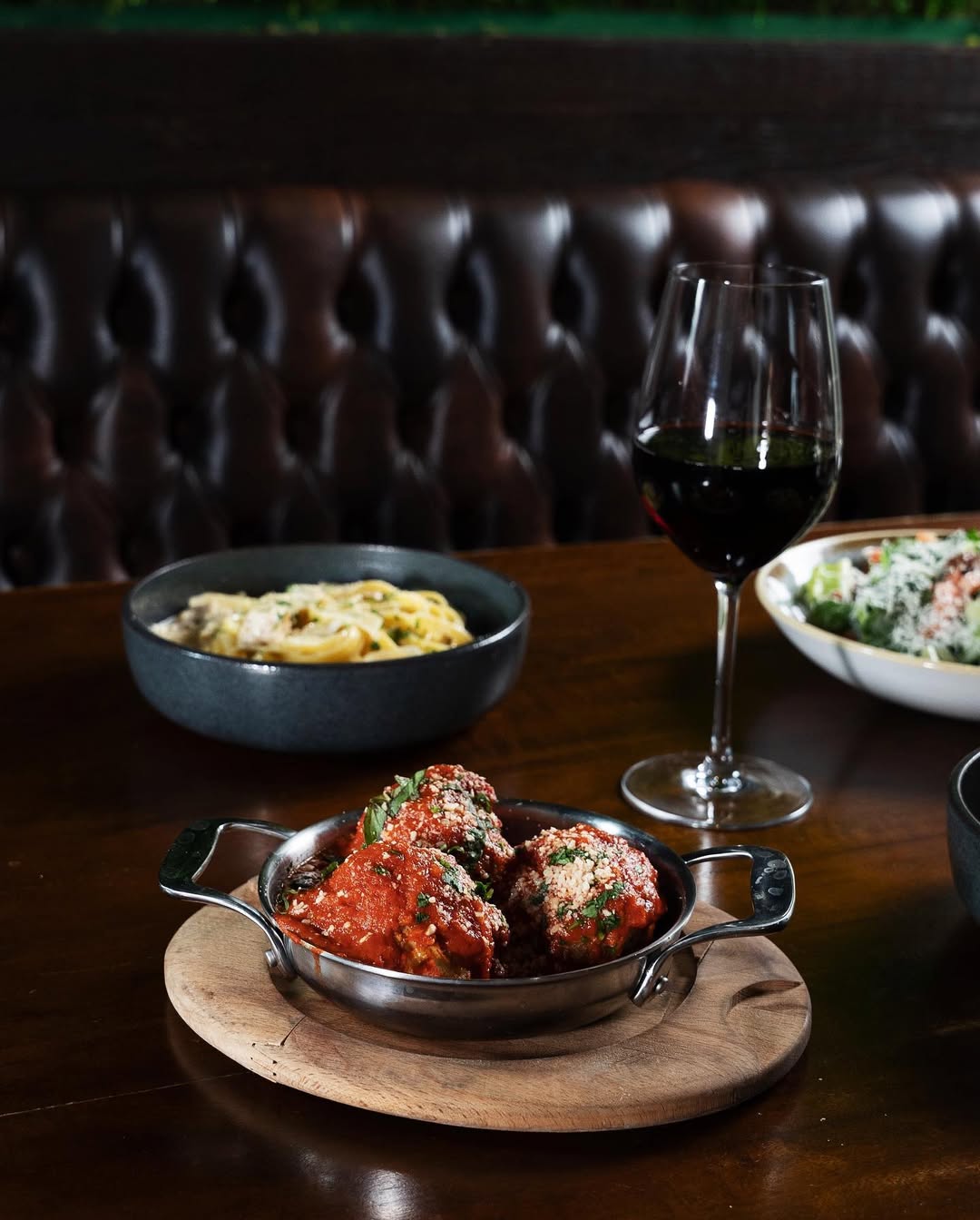 beef+pork+veal blend, marinara, parmesan, basil want them vegan? just ask.