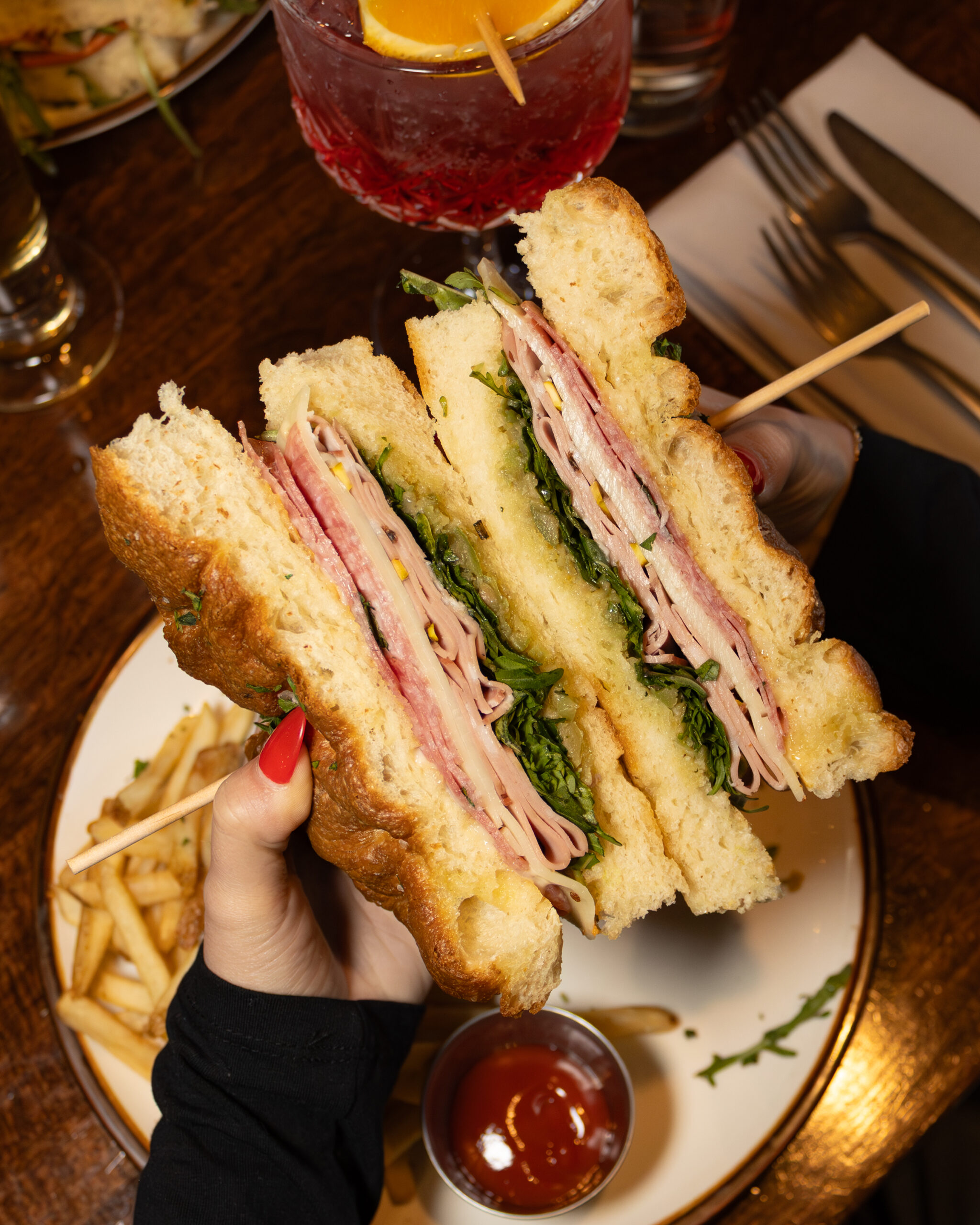 chopped romaine, pepperoncini, onion, tomato, soppressata, crispy prosciutto, pecorino, barolo vinaigrette